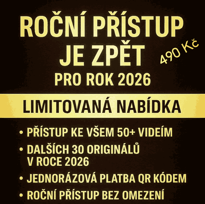 Zvýhodněná nabídka pro uživatele webu. Pouze do 31. 12. 2025 je možnost zakoupit roční členství na rok 2026 za 490 Kč. Platí pro připravovaný i starší obsah webu. Zakoupená nabídka se aktivuje od 1.1.2026 do 31.12.2026.